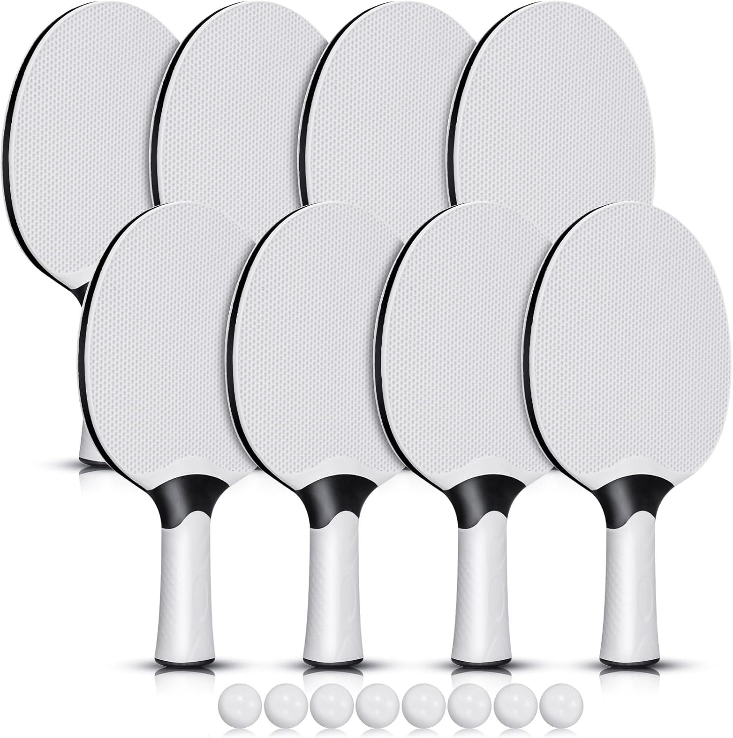 - Sufficient Set: included in the package are 8 table tennis paddles and an equal number of balls; This bulk set offers enough quantities for 8 players, making it an ideal choice for large group activities; This overall tripod of quantity, quality, and convenience makes them the ideal choice for family fun, colleague competitions, or friendly matches