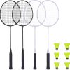 - Complete Set: badminton set includes 4 lightweight steel badminton rackets, 6 nylon shuttlecocks; Each racket weighs only 3.7 oz for easy handling; Ensuring easy handling and reducing player fatigue